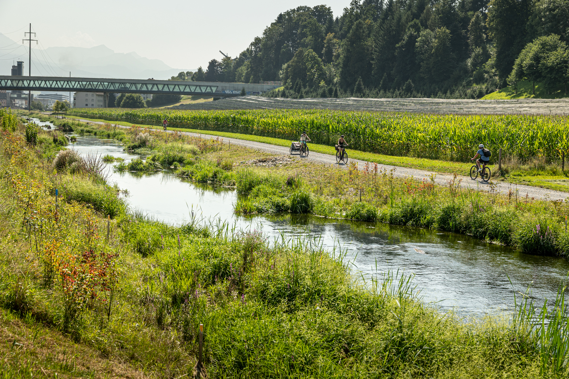 Die neue Wegführung orientiert sich am Fluss Ron, dessen Verlauf in den vergangenen Jahren durch den Kanton umfassend renaturiert und hochwassersicher gestaltet wurde.
