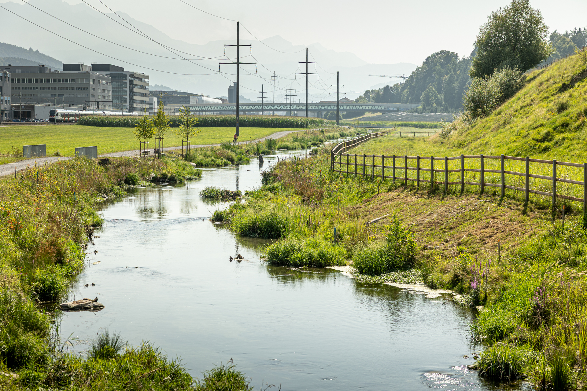 Zwischen Ebikon und Root wurden dabei über rund fünf Kilometer Flusslandschaft neu geschaffen – mit flachen Ufern, abwechslungsreicher Sohlengestaltung, begrünten Böschungen und Raum für dynamische Naturprozesse. Gleichzeitig wurde der Hochwasserschutz massiv verbessert. Wanderer und Erholungssuchende profitieren nun von neuen Wegverbindungen und attraktiven Aufenthaltsorten direkt am Wasser, die durch die Renaturierung entstanden sind.